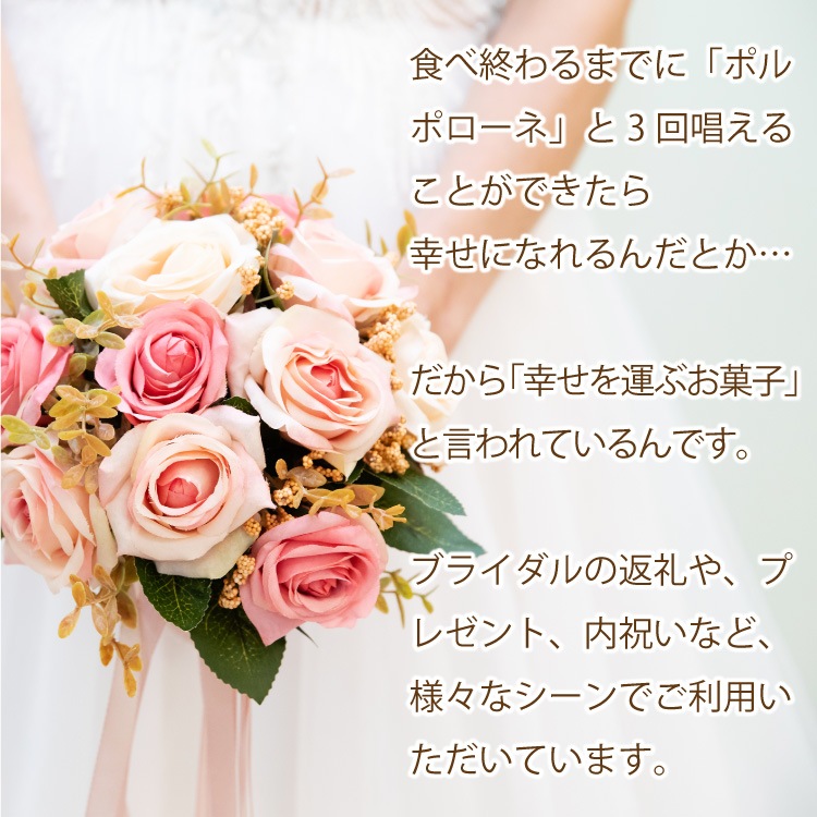 「幸せを呼ぶお菓子」という由来から、ブライダルギフトやちょっとしたプレゼントにも最適です。