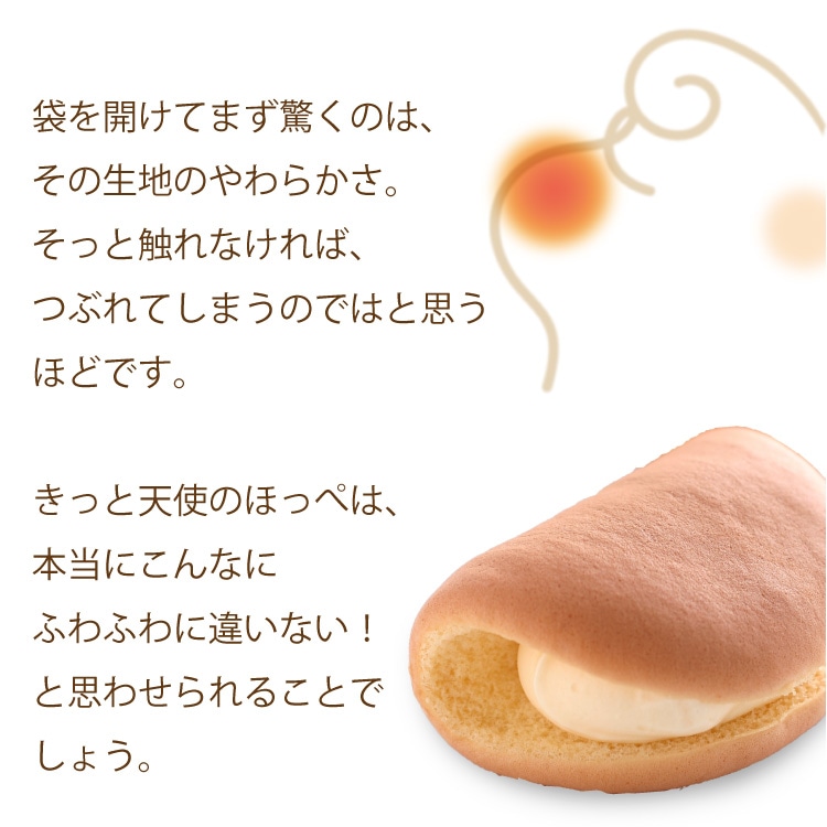 天使のようなふわふわ生地に新鮮なカスタードクリームをたっぷりはさみました。