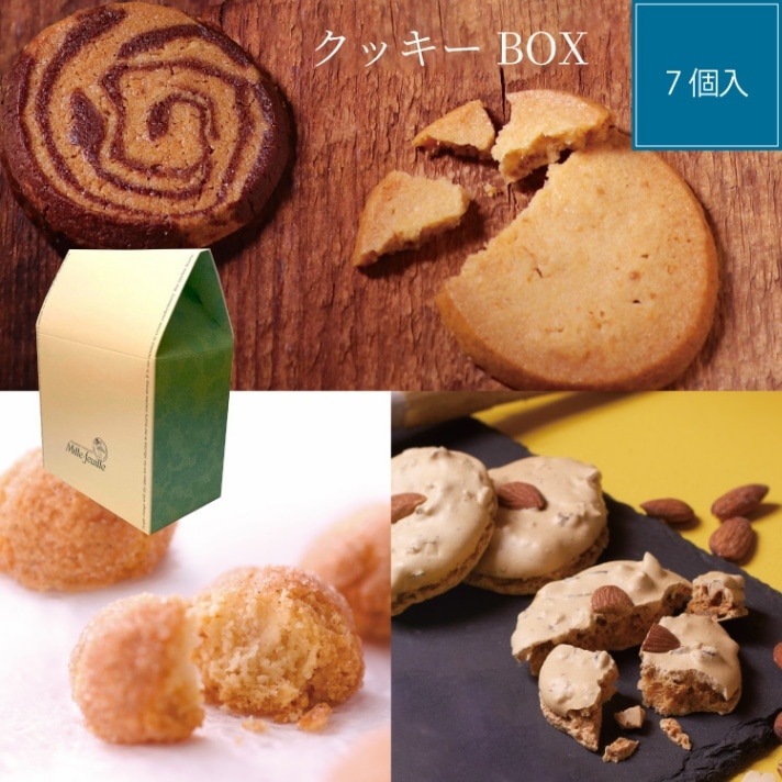 クッキーBOX(CB-9) 内容量 プレミアムクッキー(バター・マーブル)各1、ロッシェ(アーモンド)1、ポルポローネ(プレーン・チョコ)各1、ココナッツミルク4個1、カントリークッキー(ごま)3枚1 原材料名 バター:バター(国内製造)、小麦粉、砂糖、アーモンド、卵、脱脂粉乳、植物油脂(大豆を含む)、塩、牛乳/香料