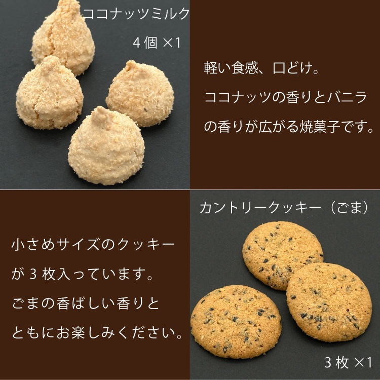 カントリークッキー(ごま):小麦粉(国内製造)、砂糖、バター、ゴマ、液全卵、アーモンド、脱脂粉乳/膨張剤アレルギー 乳・小麦・卵・大豆・アーモンド・ゴマ 保存方法 直射日光を避け、常温で保管 賞味期限 商品到着から30日以上 配送方法 常温 備考 こんな用途で 進物 御使い物 お礼 ご挨拶 御礼 ご祝儀 祝儀の品 お使い物 ノベルティー 粗品 景品 誕生日 敬老の日 バースデー 結婚記念日 お年賀 パーティー お中元 お歳暮 母の日 父の日 御祝い 内祝い お返し クリスマス イベント