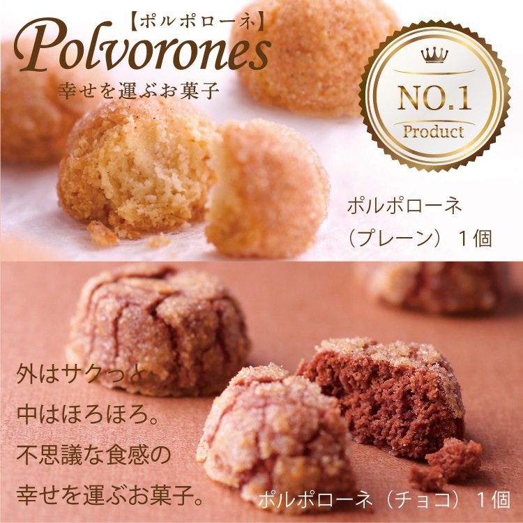 ポルポローネプレーン:小麦粉(国内製造)、バター、砂糖、アーモンド、卵、脱脂粉乳、塩/バニラ香料