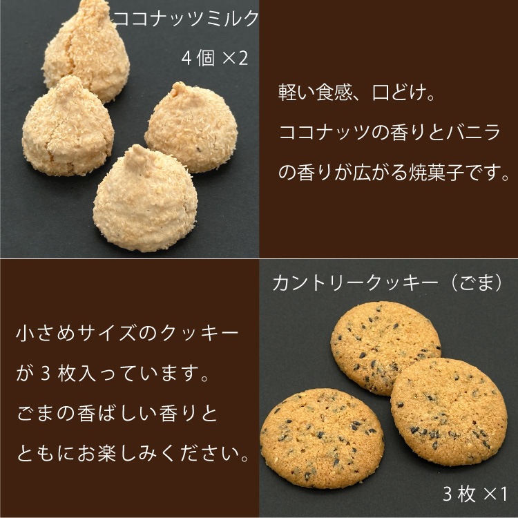 カントリークッキー(ごま):小麦粉(国内製造)、砂糖、バター、ゴマ、液全卵、アーモンド、脱脂粉乳/膨張剤アレルギー 乳・小麦・卵・大豆・アーモンド・ゴマ 保存方法 直射日光を避け、常温で保管 賞味期限 商品到着後30日以上 配送方法 常温 備考 こんな用途で 進物 御使い物 お礼 ご挨拶 御礼 ご祝儀 祝儀の品 お使い物 ノベルティー 粗品 景品 誕生日 敬老の日 バースデー 結婚記念日 お年賀 パーティー お中元 お歳暮 母の日 父の日 御祝い 内祝い お返し クリスマス イベント