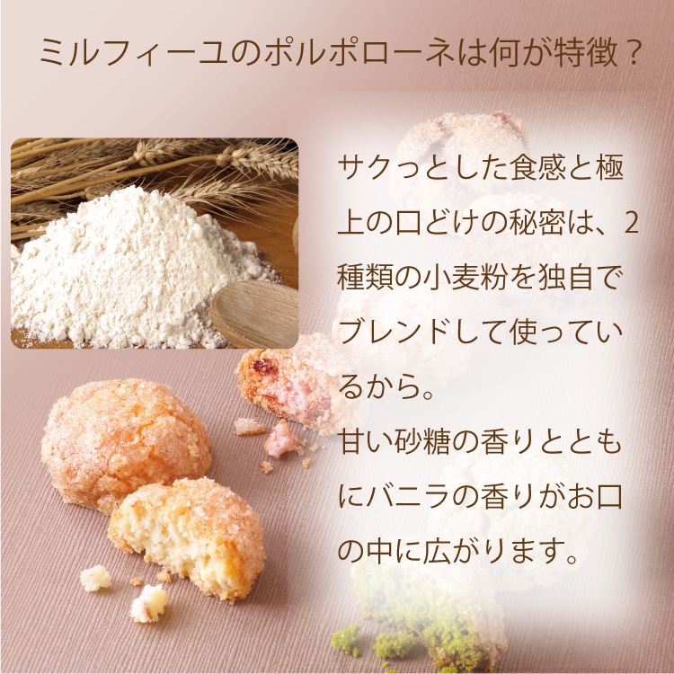 ミルフィーユの一番人気のポルポローネ、フィナンシェ、マドレーヌの詰合せ。