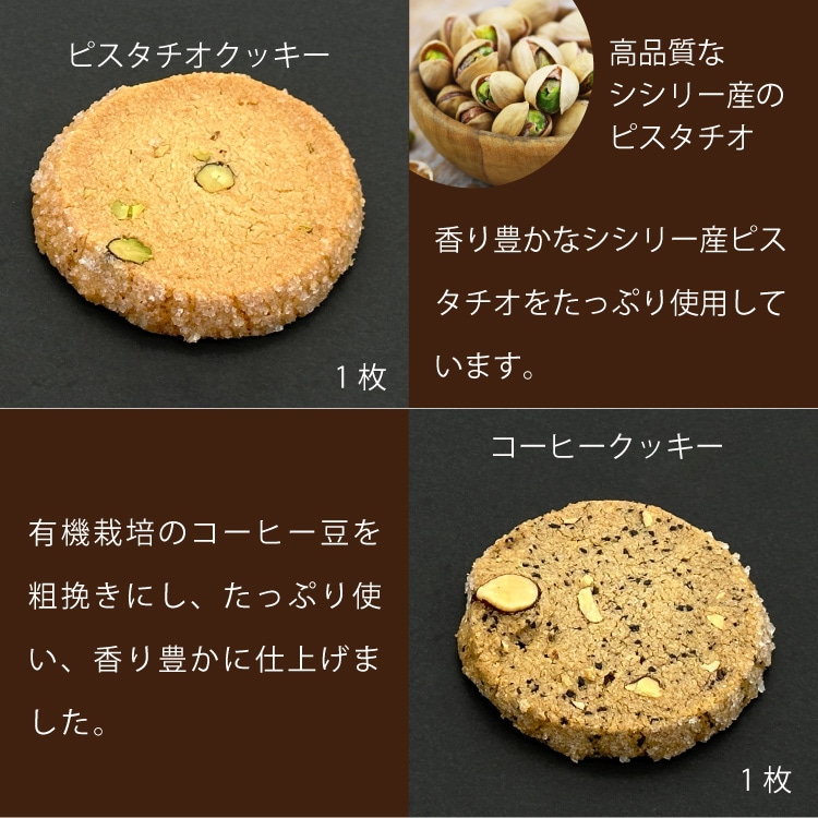 ピスタチオ:小麦粉(国内製造)、バター、砂糖、ピスタチオ、卵、アーモンド、植物油脂(大豆を含む)、塩、牛乳/香料