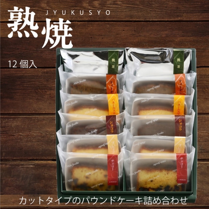 熟焼(Jukusho)12個入 内容量 プレーンパウンド、挽茶パウンド、紅茶パウンド、チェリーパウンド、ショコラパウンド、バターカステラ各2 原材料名 プレーン:バター(国内製造)、卵、砂糖、小麦粉、アーモンド、脱脂粉乳、水飴、アプリコットジャム、ブドウ糖シロップ/膨張剤、ゲル化剤(ペクチン)、酸味料、保存料(ソルビン酸K)
